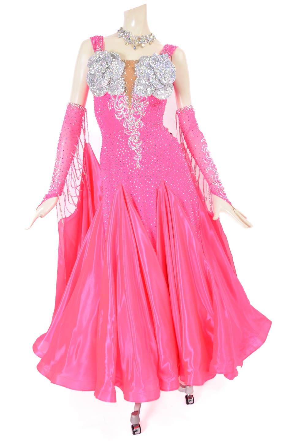 スタンダードドレス TDF-WS22033 エレクトリックピンク M 社交ダンス モダンドレス ボールルームドレス タカダンス