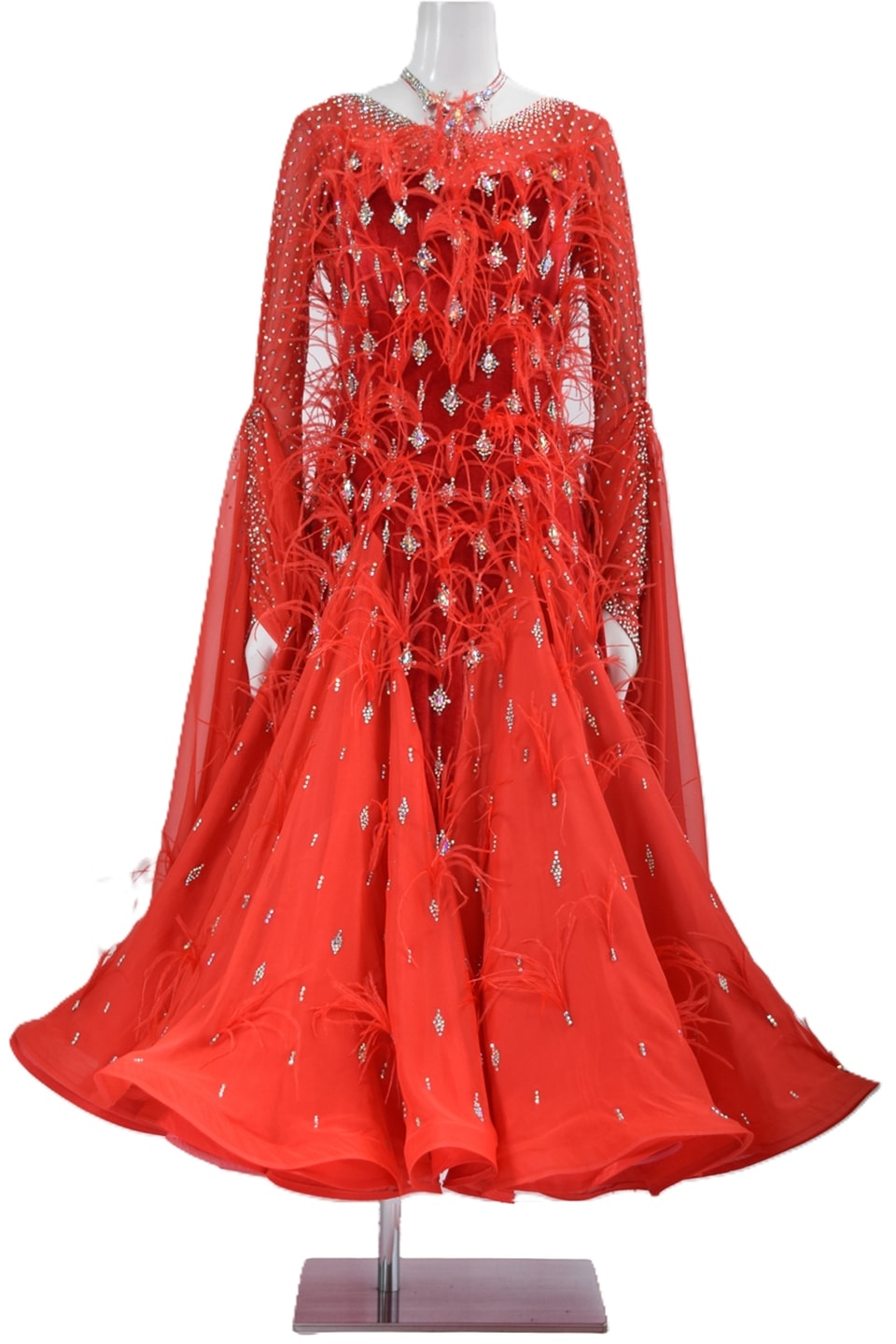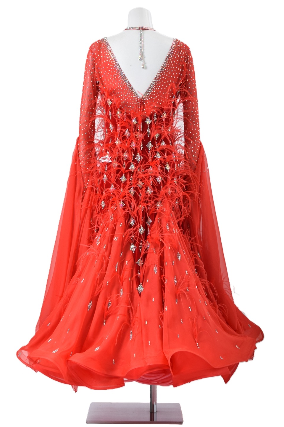 スタンダードドレス WS0713D FLレッド M 社交ダンス モダンドレス ボールルームドレス タカダンス