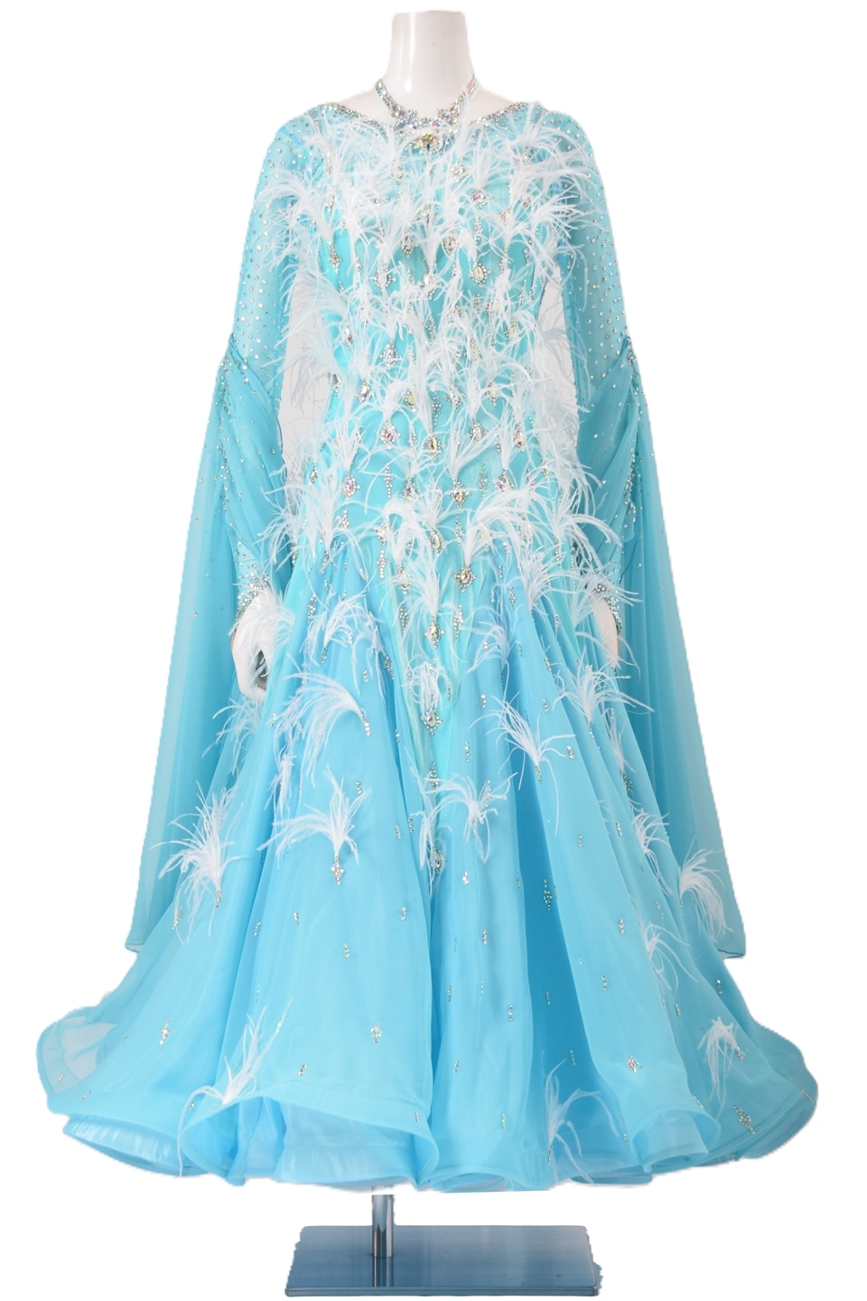 スタンダードドレス WS0727D アイスブルー L 社交ダンス モダンドレス ボールルームドレス タカダンス