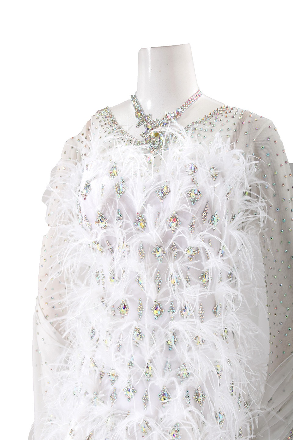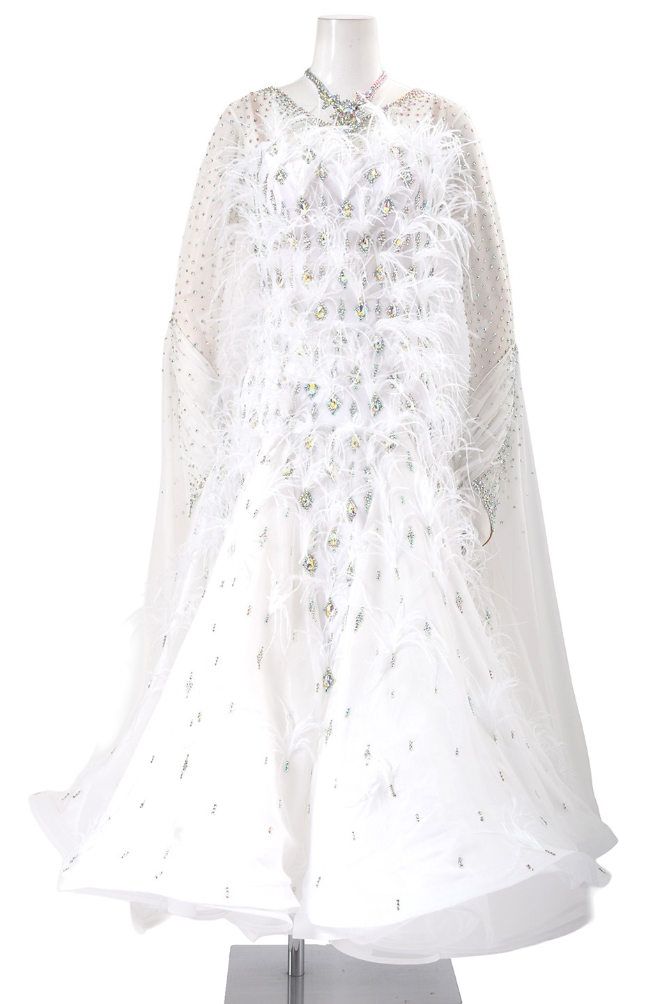 トップ > LADIES > ドレス > スタンダード > スタンダードドレス WS0725D ホワイト L 社交ダンス モダンドレス ボールルームドレス タカダンス