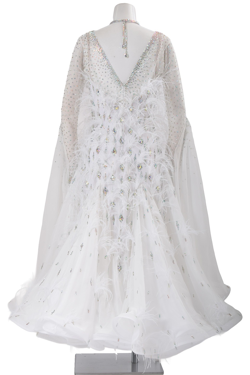 スタンダードドレス WS0726D ホワイト L 社交ダンス モダンドレス ボールルームドレス タカダンス