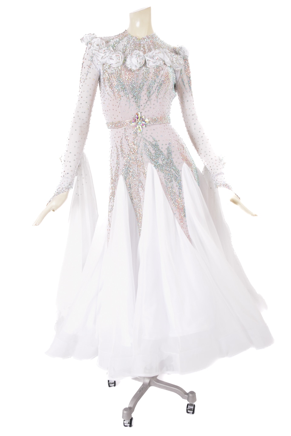 トップ > LADIES > ドレス > スタンダード > スタンダードドレス WS0633D ホワイト S 社交ダンス モダンドレス ボールルームドレス タカダンス