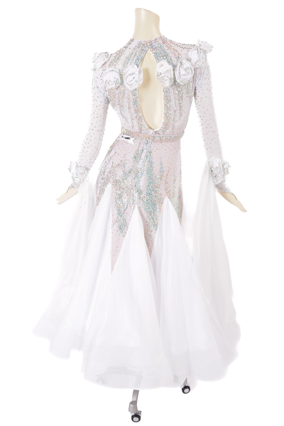 スタンダードドレス WS0725D ホワイト L 社交ダンス モダンドレス ボールルームドレス タカダンス
