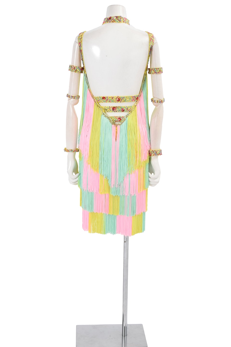 トップ > LADIES > ドレス > Sサイズ > ラテンドレス WL0161D サシーイエロー/スペアミント/ローズピンク S 社交ダンス タカダンス