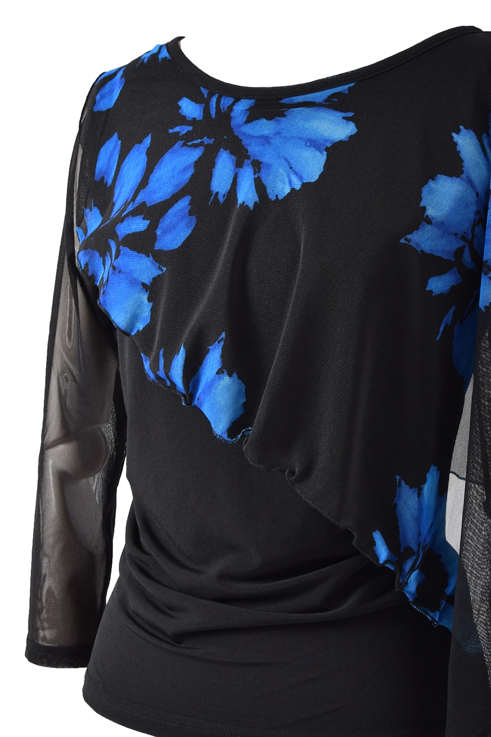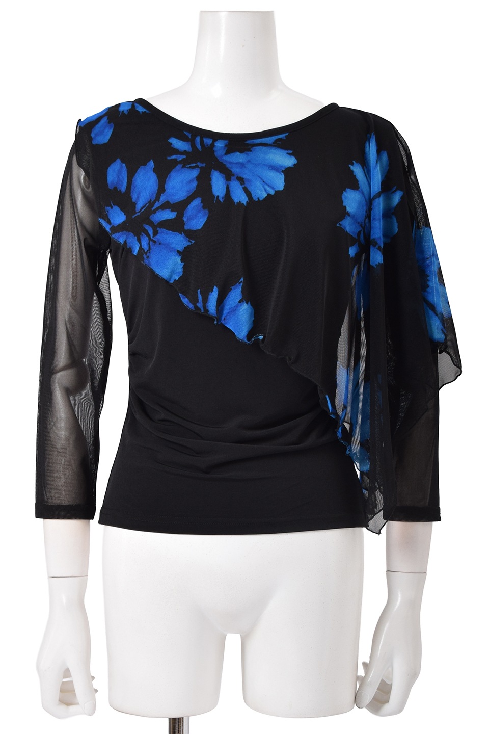 柄生地の飾り布はストレッチの効いたメッシュ地で、動きに合わせて揺れるのでレッスンはもちろんパーティのダンスシーンにもおすすめです。
