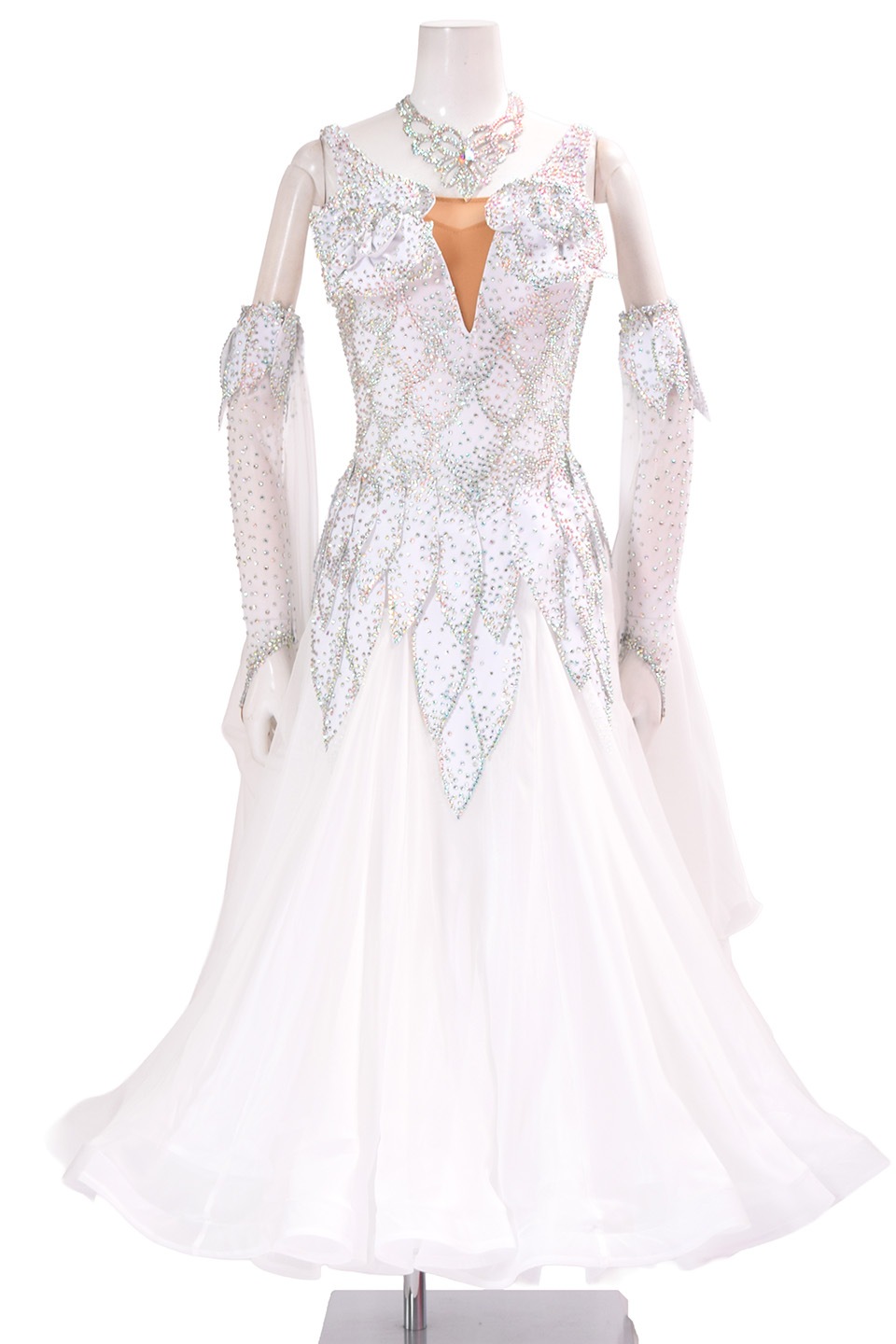 スタンダードドレス WS0733D ホワイト L 社交ダンス モダンドレス ボールルームドレス タカダンス