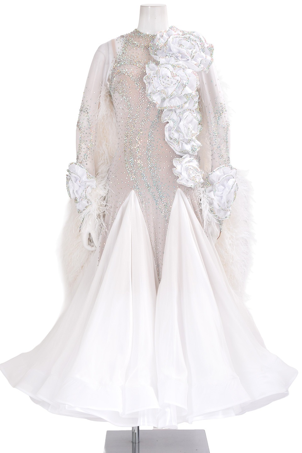 スタンダードドレス WS0726D ホワイト L 社交ダンス モダンドレス ボールルームドレス タカダンス