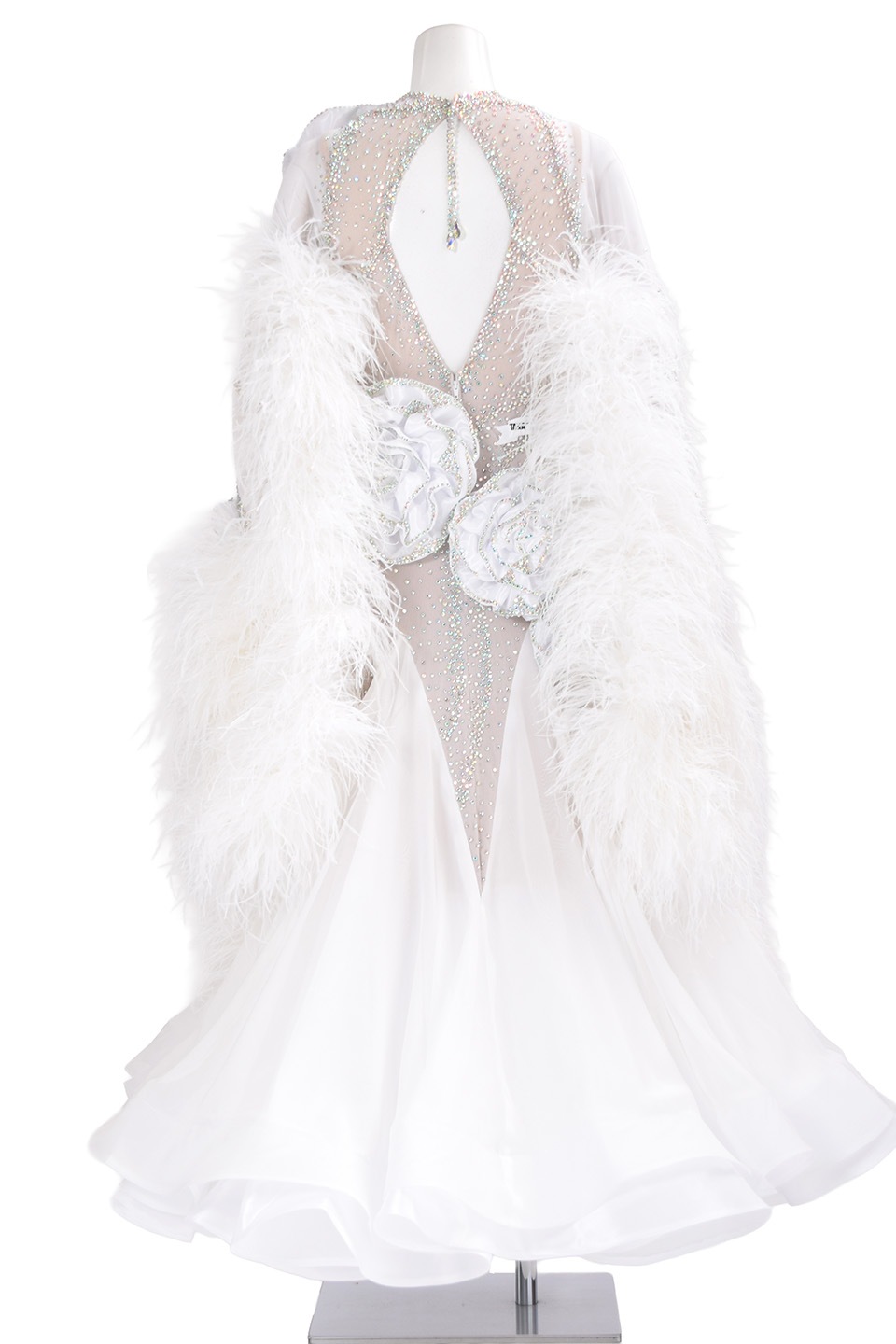 スタンダードドレス WS0733D ホワイト L 社交ダンス モダンドレス ボールルームドレス タカダンス