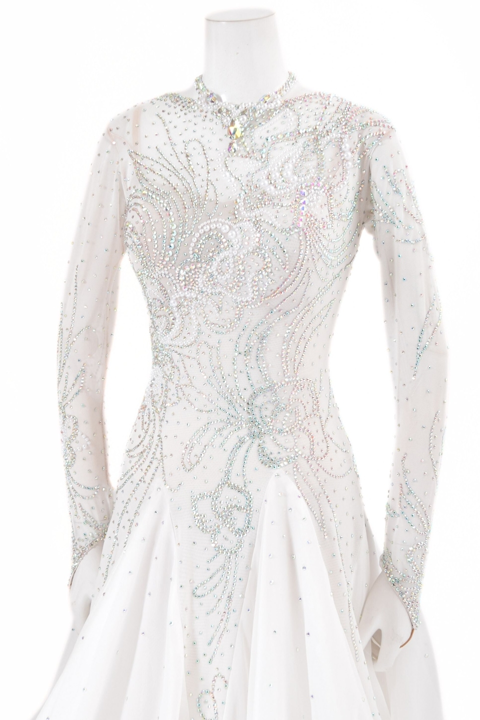 スタンダードドレス WS0726D ホワイト L 社交ダンス モダンドレス ボールルームドレス タカダンス