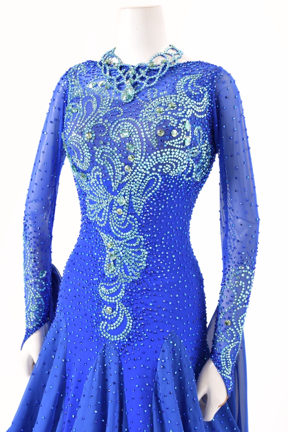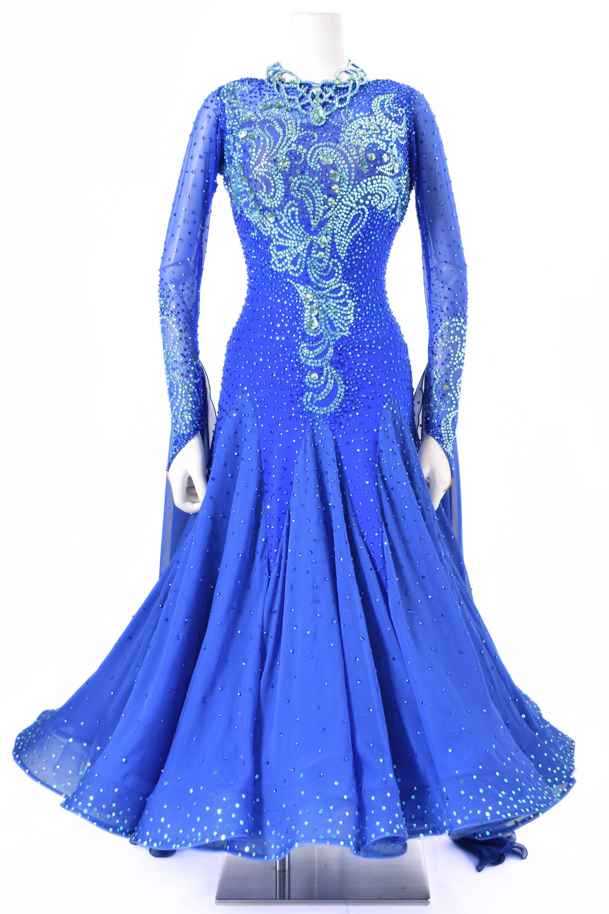 スタンダードドレス WS0740D マルチブルー S 社交ダンス モダンドレス ボールルームドレス タカダンス