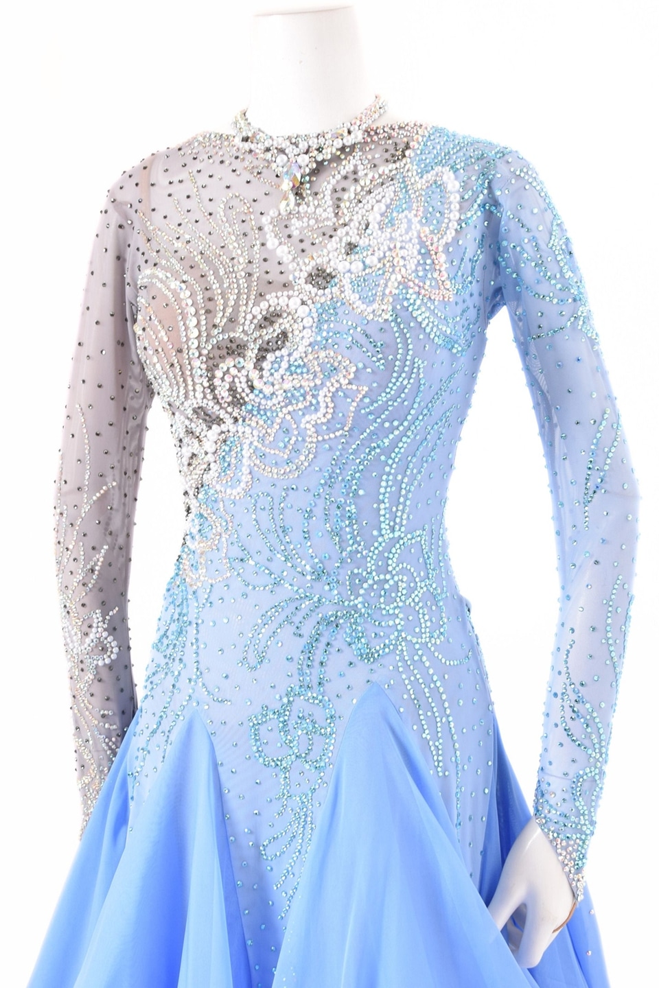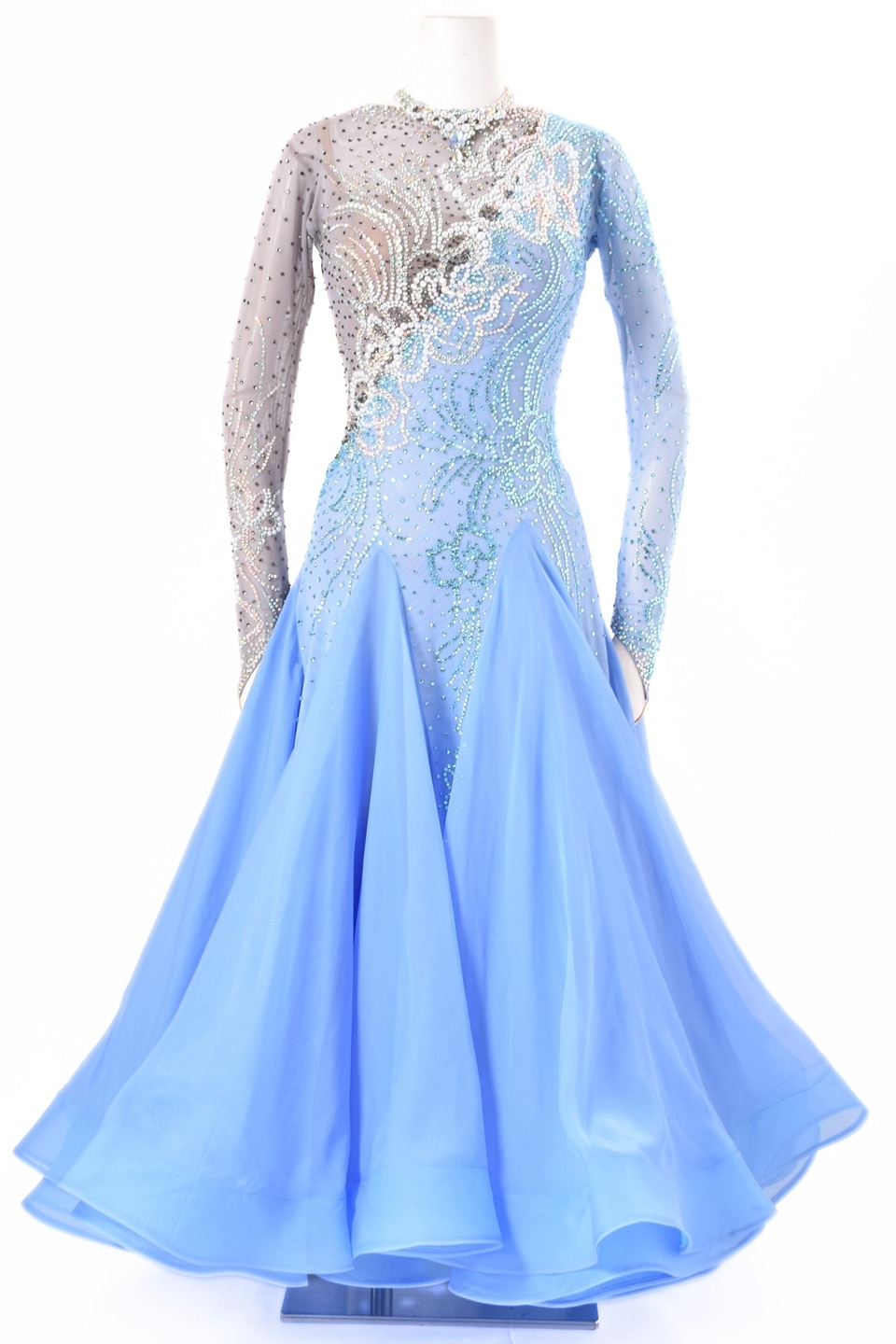トップ > LADIES > ドレス > スタンダード > スタンダードドレス WS0733D グレー/ブルーベル L 社交ダンス モダンドレス ボールルームドレス タカダンス