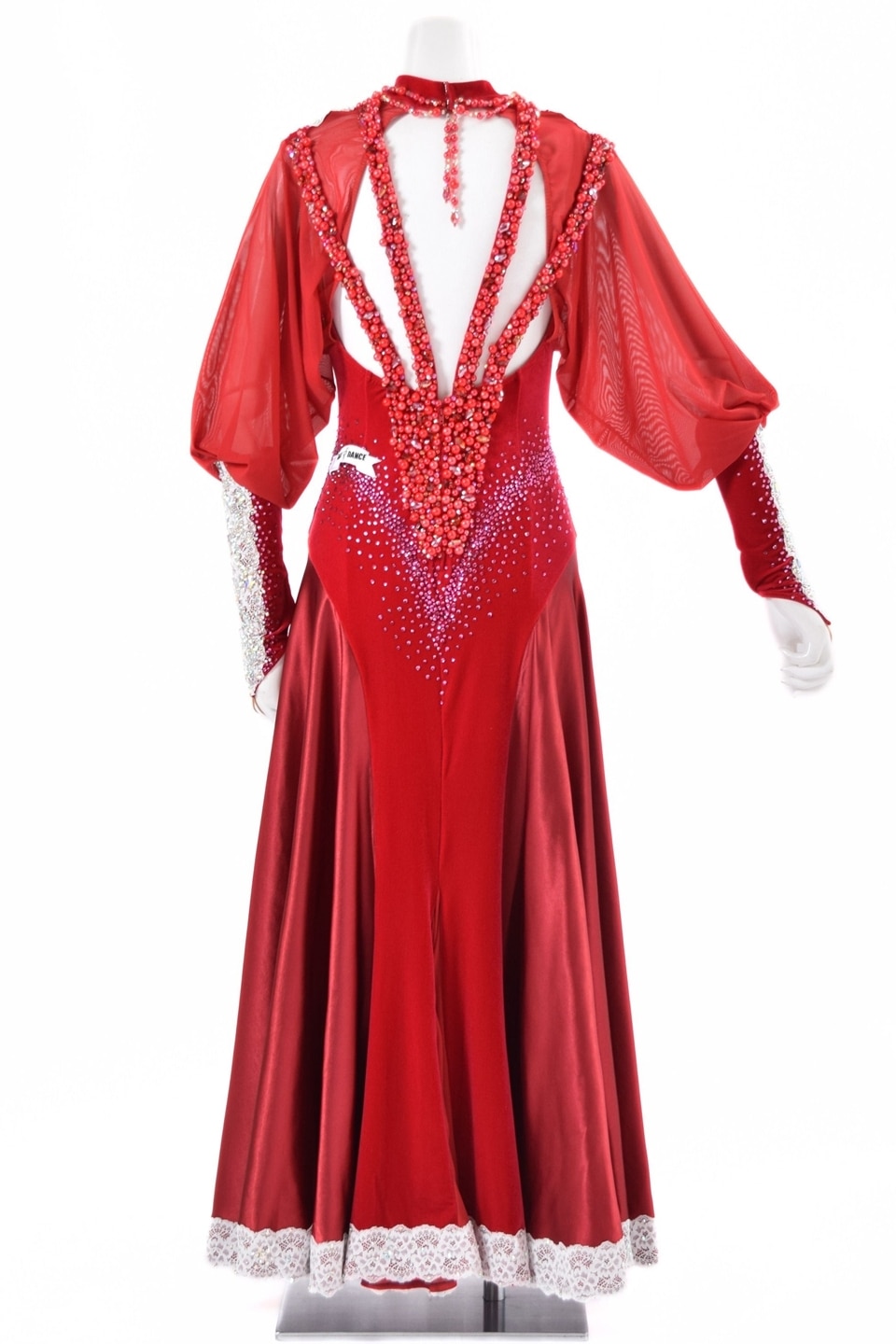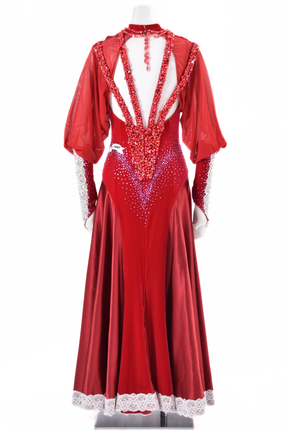 スタンダードドレス WS0657D レッド/ブラック M 社交ダンス モダンドレス ボールルームドレス タカダンス