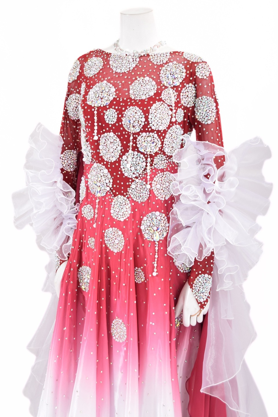 トップ > LADIES > ドレス > スタンダード > スタンダードドレス WS0728D ワイン/ホワイト L 社交ダンス モダンドレス ボールルームドレス タカダンス