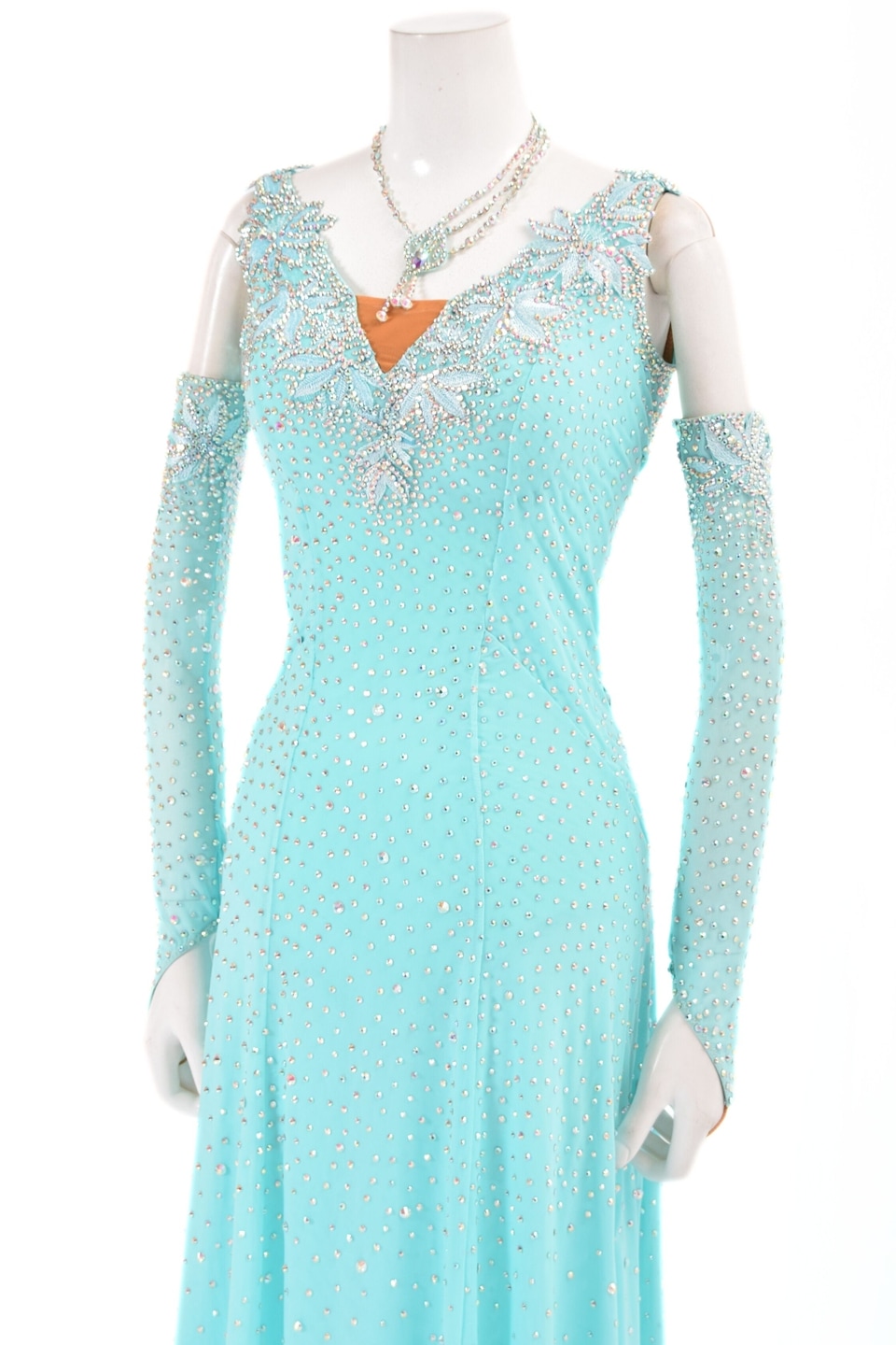 スタンダードドレス WS0728D ブルージルコン/ペールアクア L 社交ダンス モダンドレス ボールルームドレス タカダンス