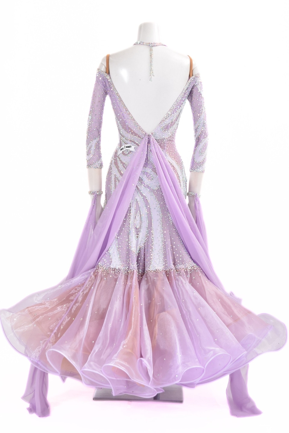 スタンダードドレス WS0702D ライラック/ホワイト L 社交ダンス モダンドレス ボールルームドレス タカダンス