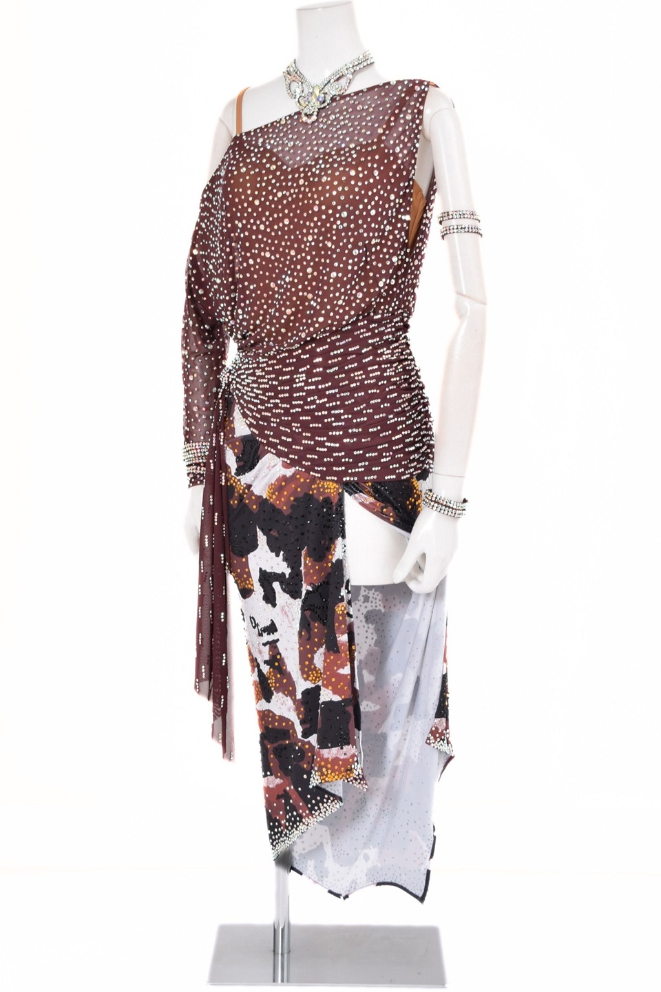 スタンダードドレス WS0691D ココア/クリーム M 社交ダンス モダンドレス ボールルームドレス タカダンス