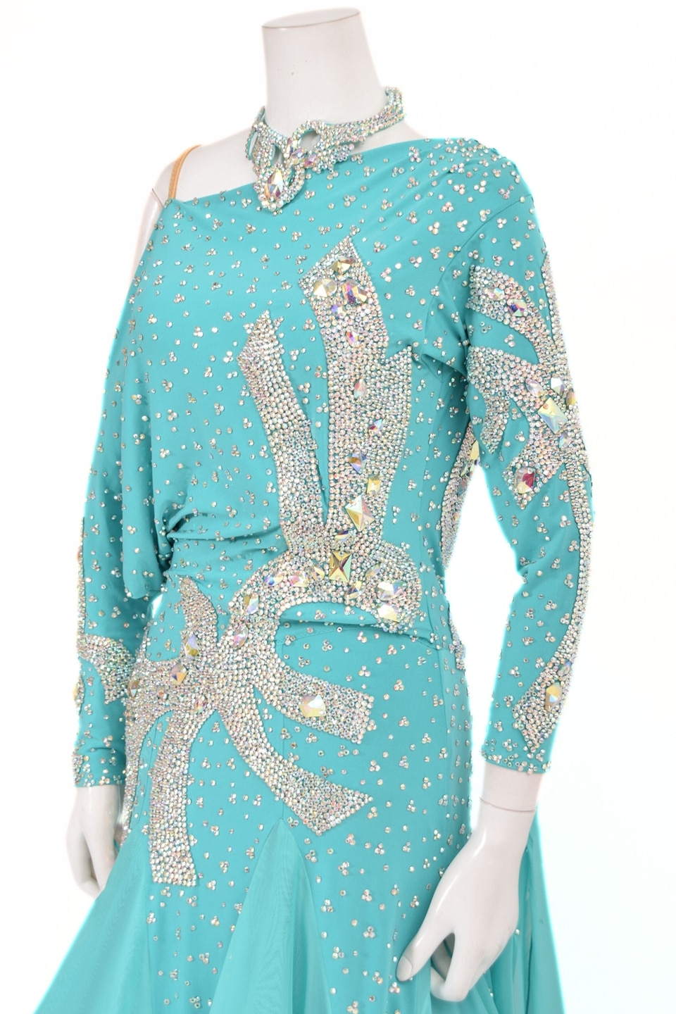 スタンダードドレス WS0728D ブルージルコン/ペールアクア L 社交ダンス モダンドレス ボールルームドレス タカダンス