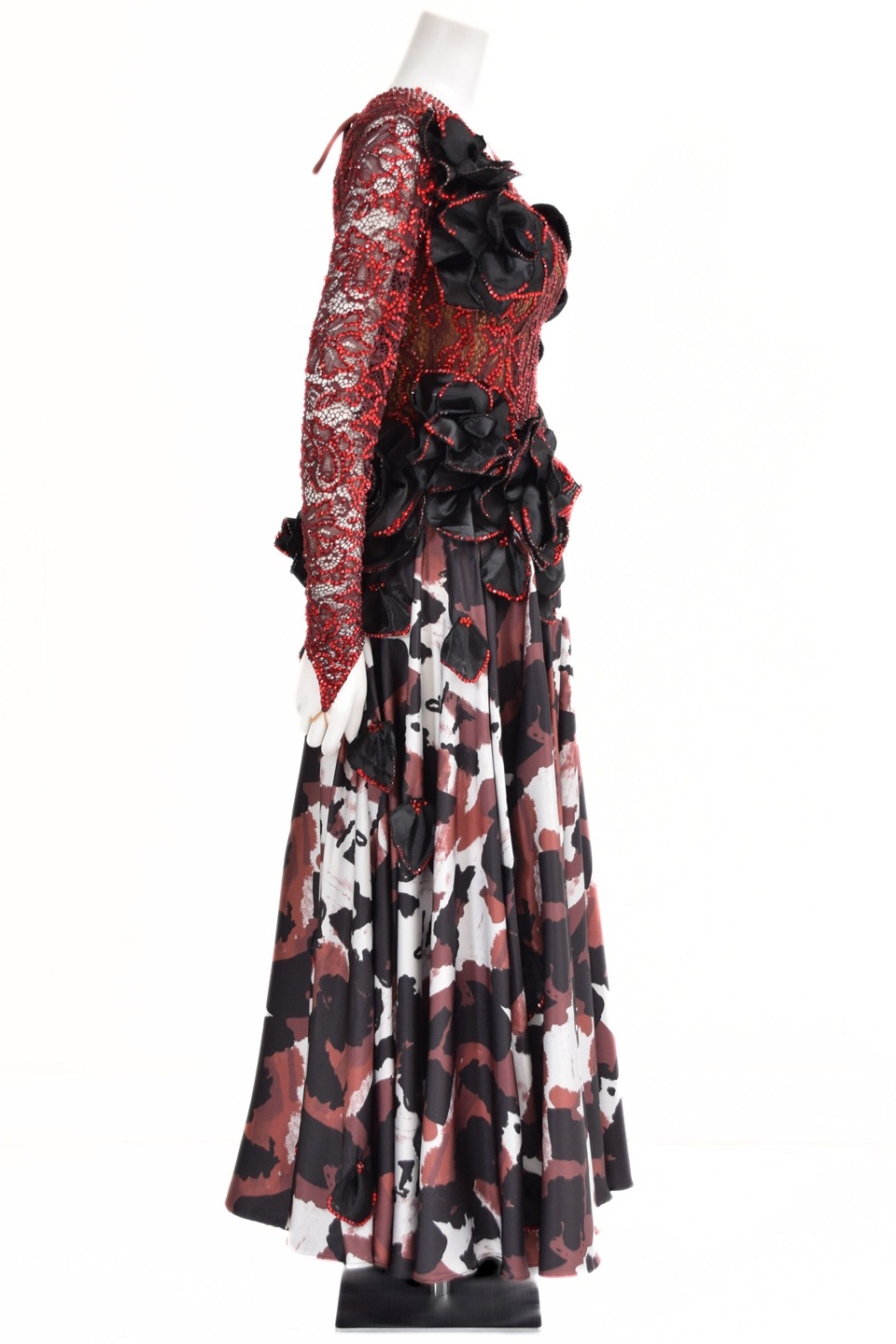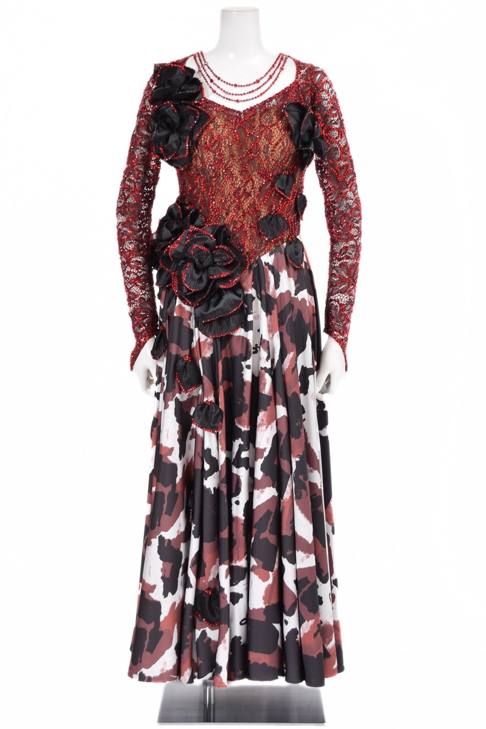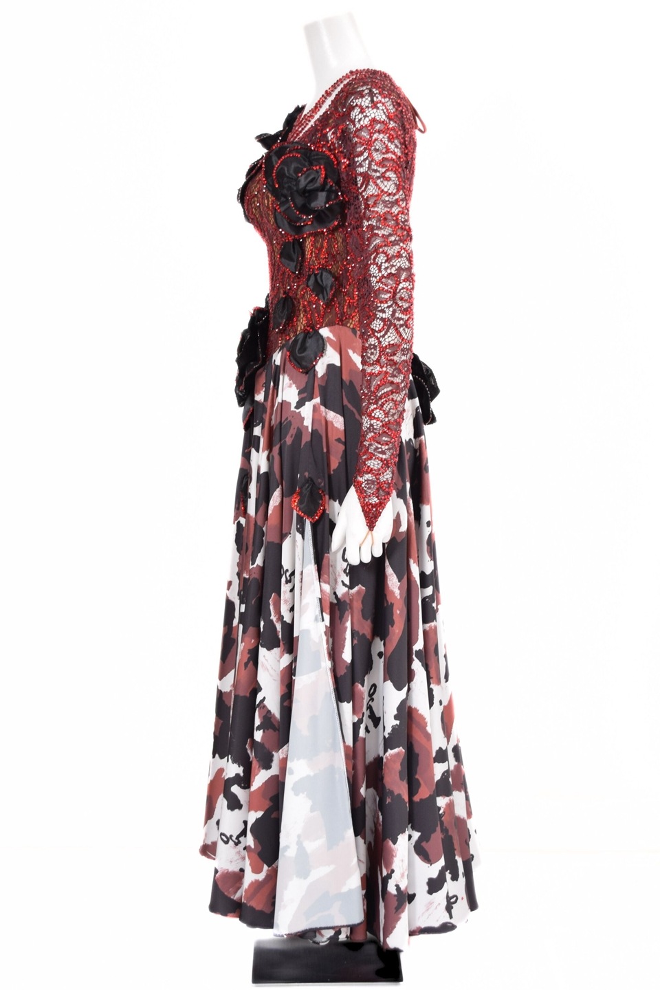 スタンダードドレス WS0728D ワイン/ホワイト L 社交ダンス モダンドレス ボールルームドレス タカダンス