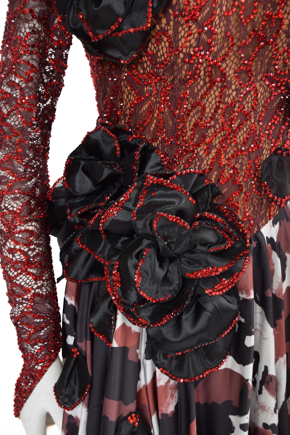 タカダンスオリジナルデザインの社交ダンス ドレス。エスプレッソを基調に力強さと華やかさを