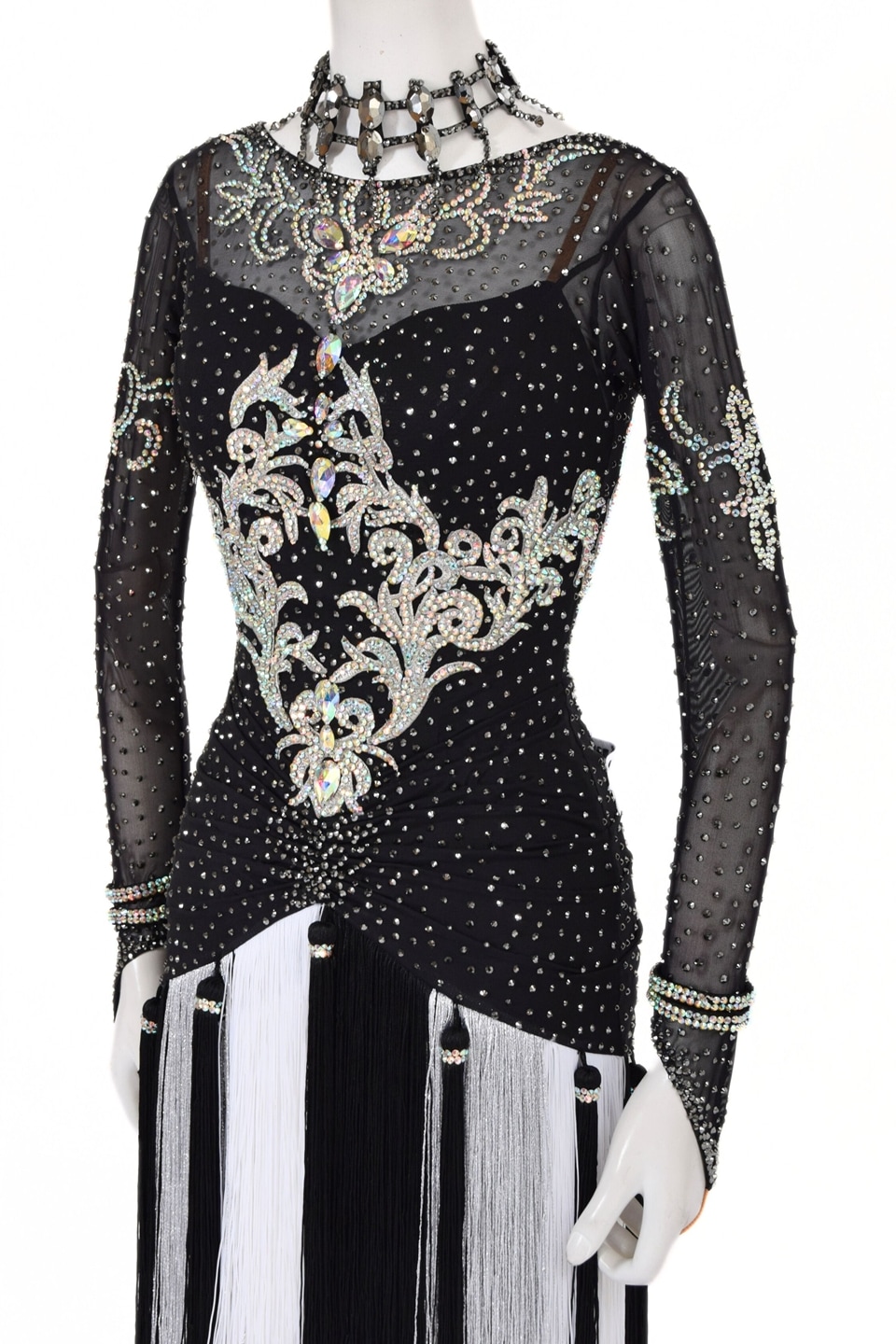 スタンダードドレス WS0738D ホワイト/ブラック S 社交ダンス モダンドレス ボールルームドレス タカダンス