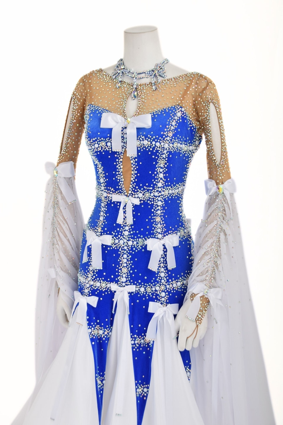 トップ > LADIES > ドレス > スタンダード > スタンダードドレス WS0691D ライトコバルト/ホワイト M 社交ダンス モダンドレス ボールルームドレス タカダンス