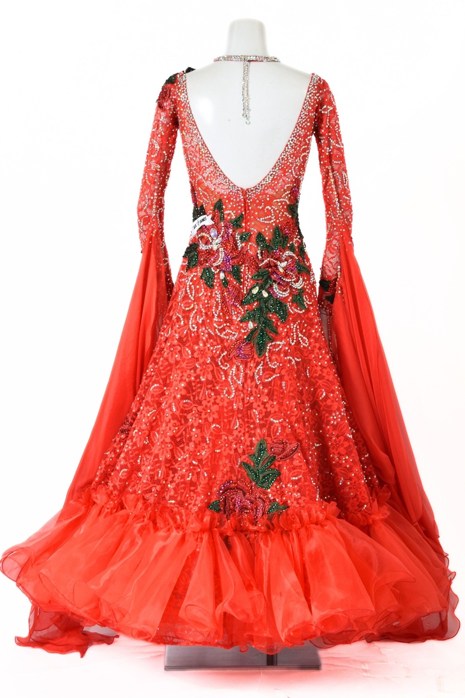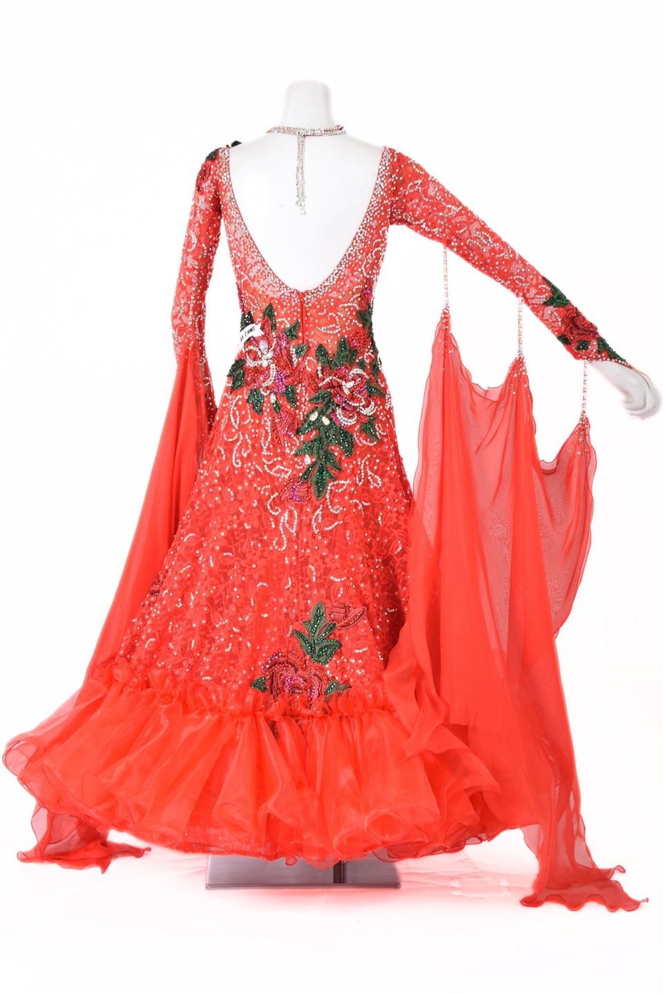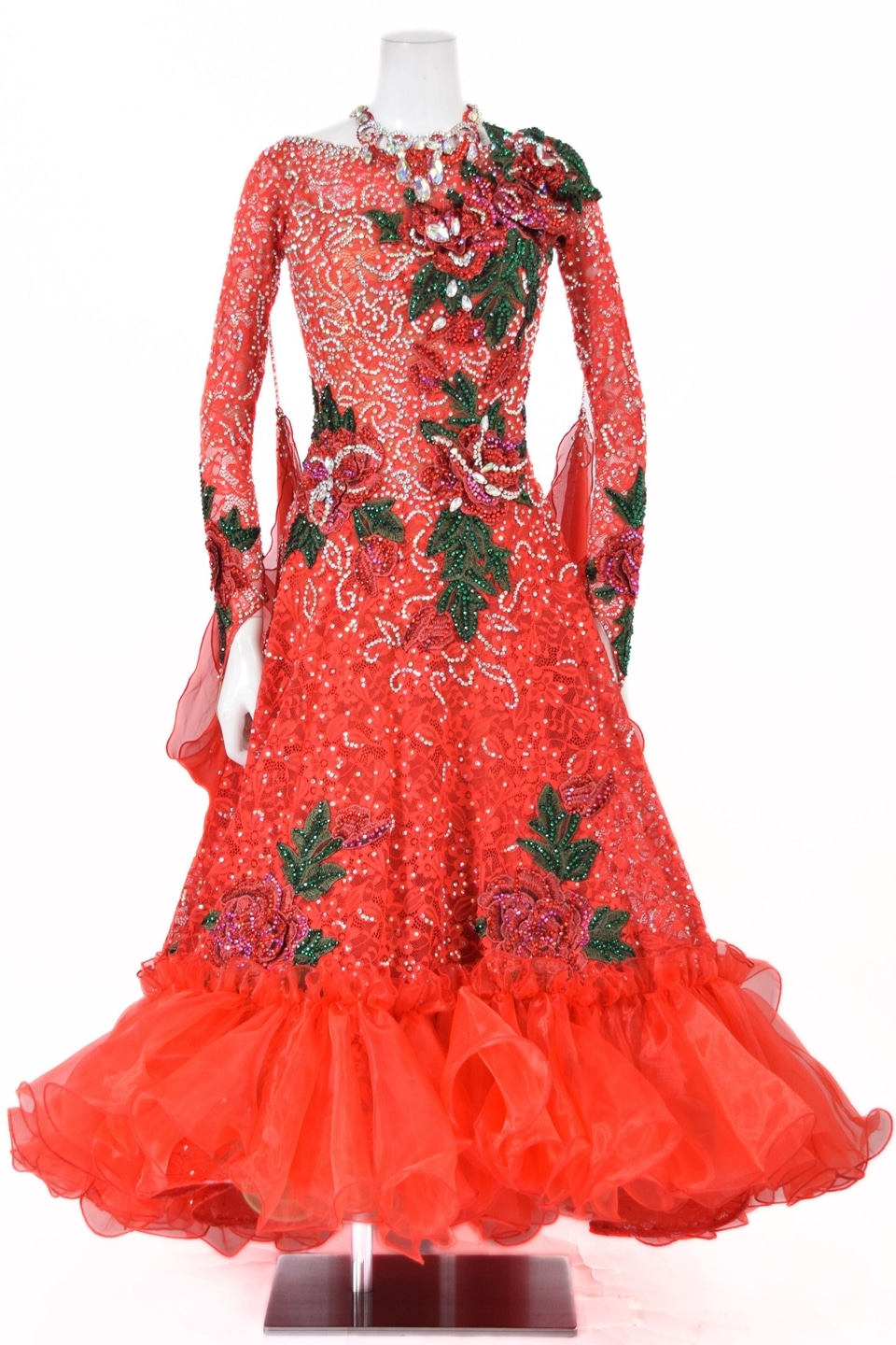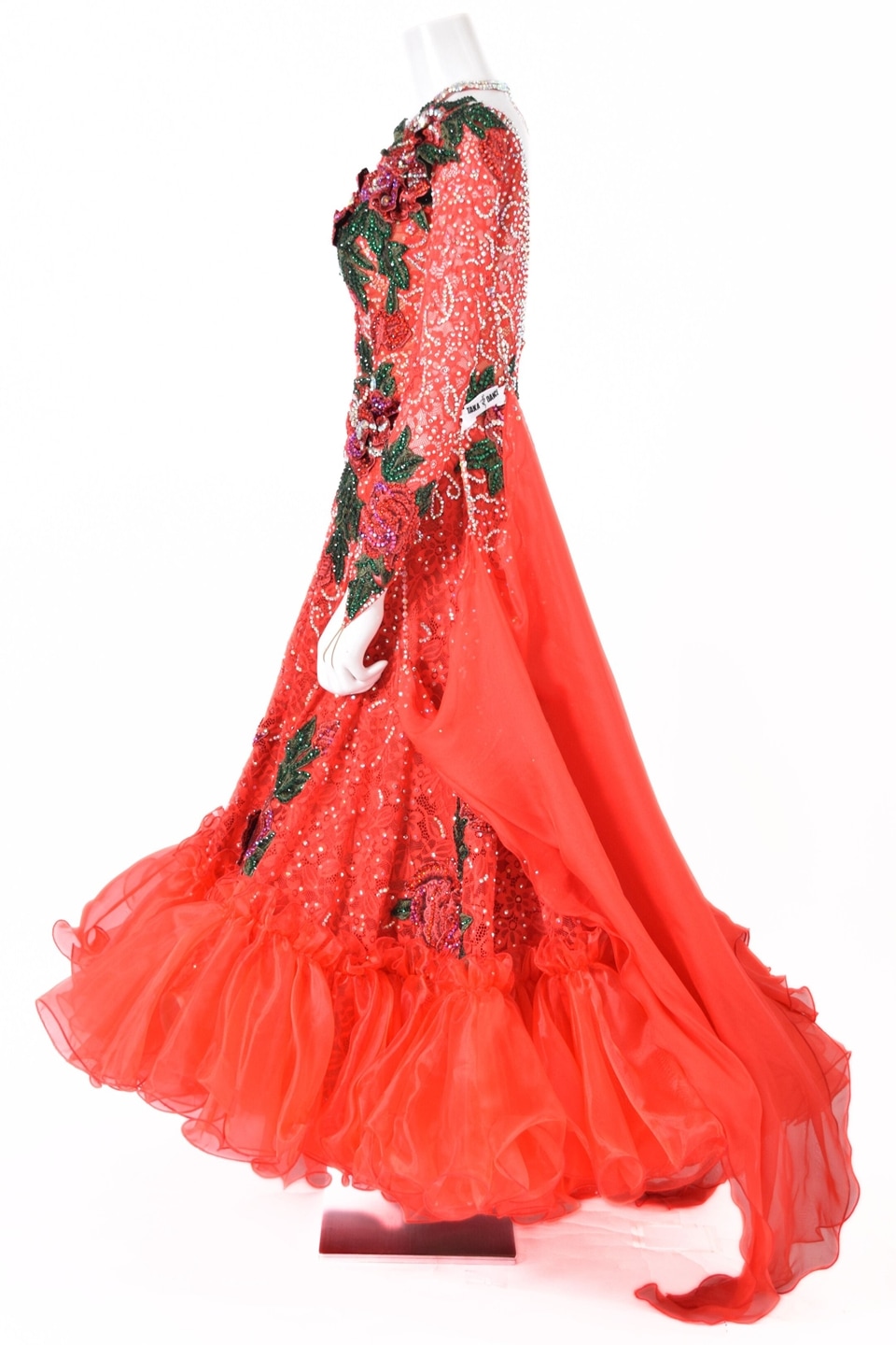 スタンダードドレス WS0735D FLレッド L 社交ダンス モダンドレス ボールルームドレス タカダンス