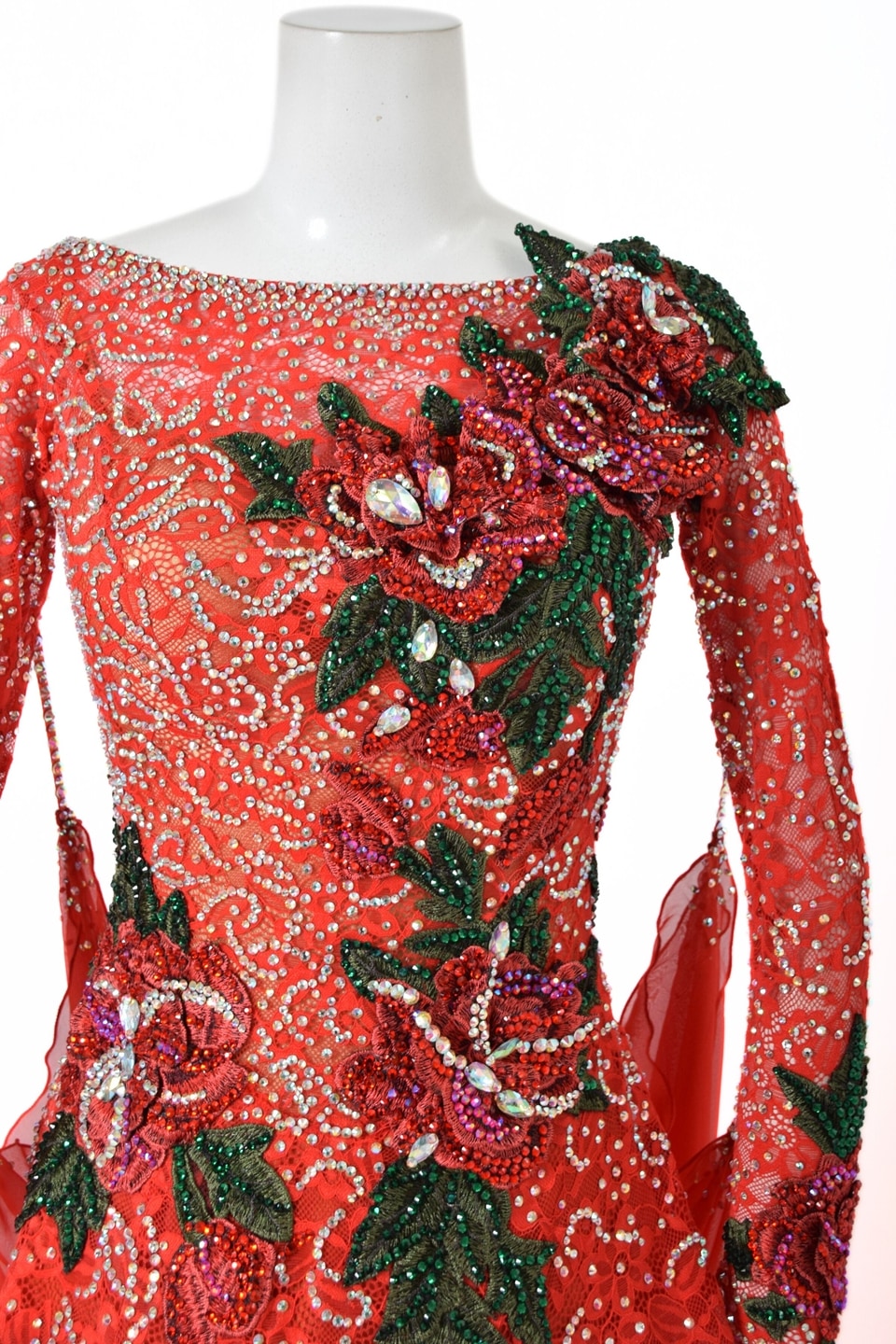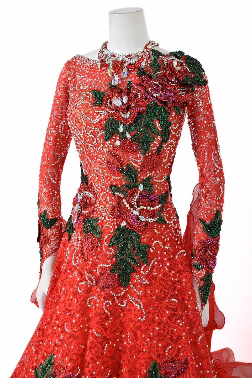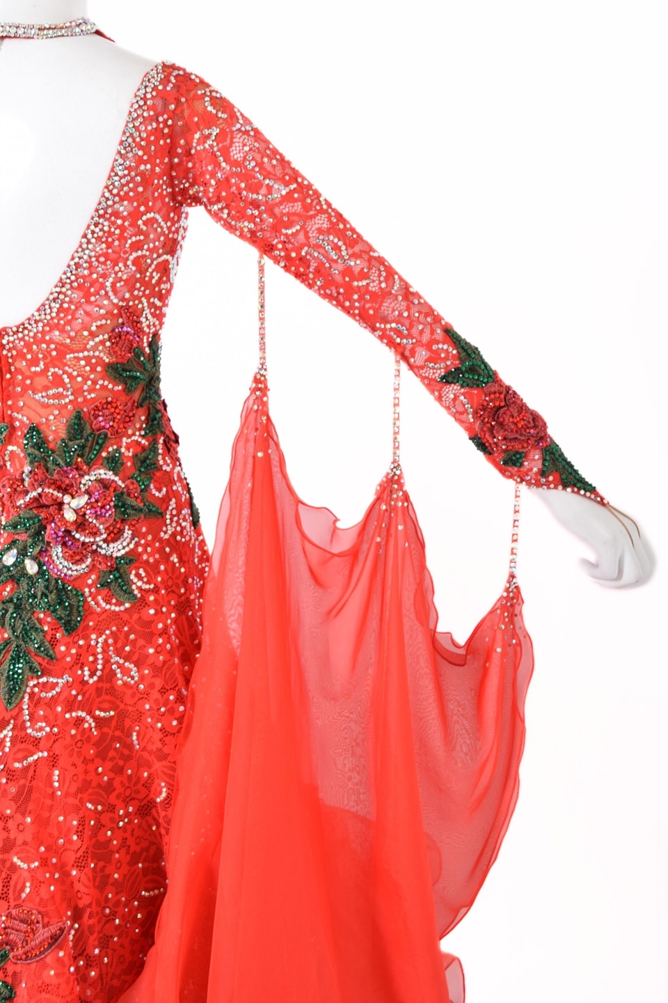 スタンダードドレス WS0725D レッド L 社交ダンス モダンドレス ボールルームドレス タカダンス