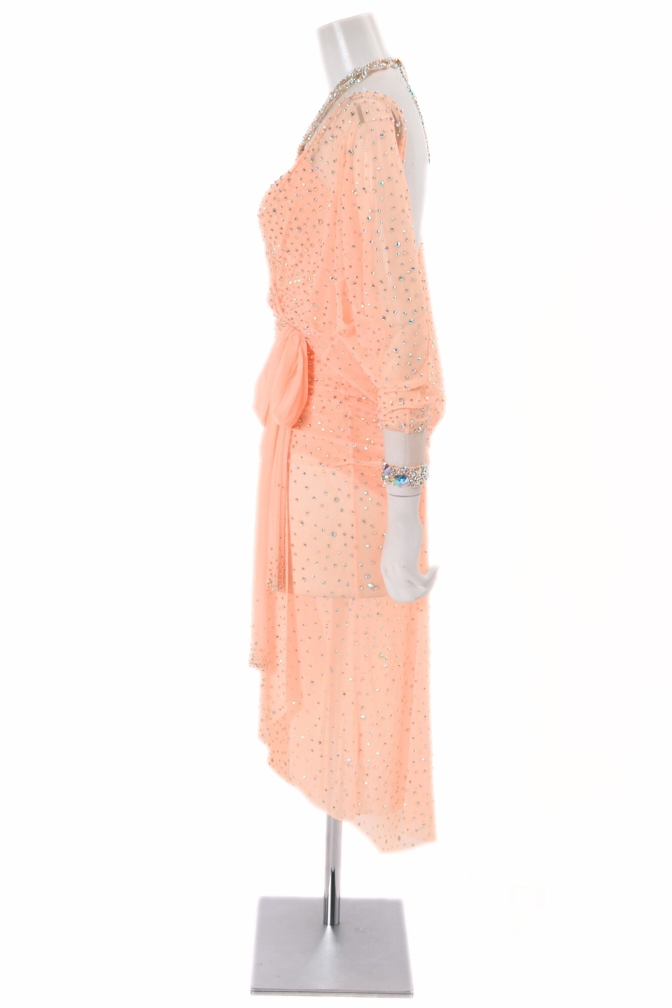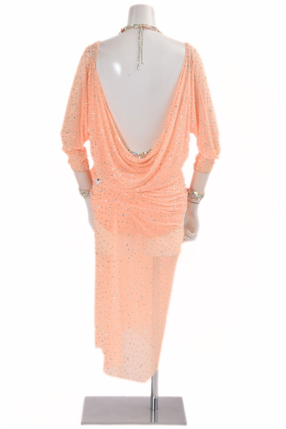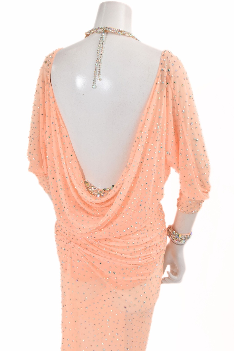 アメリカンスムースドレス TDF-M1848AS サーモン L (身長170cm) 社交ダンス モダンドレス ボールルームドレス タカダンス