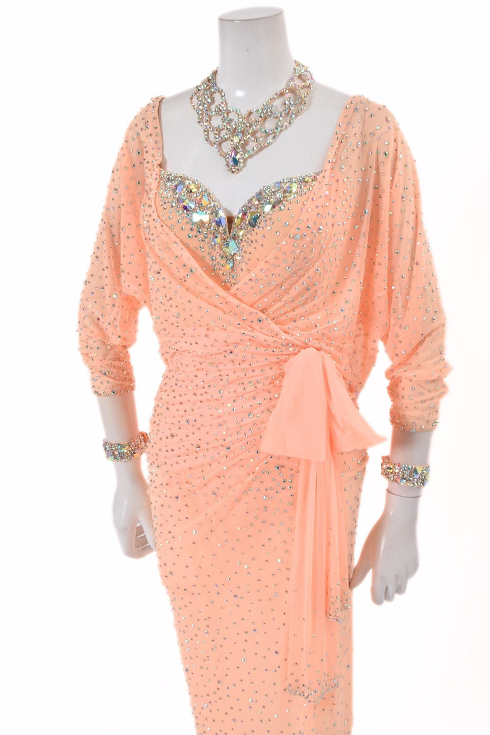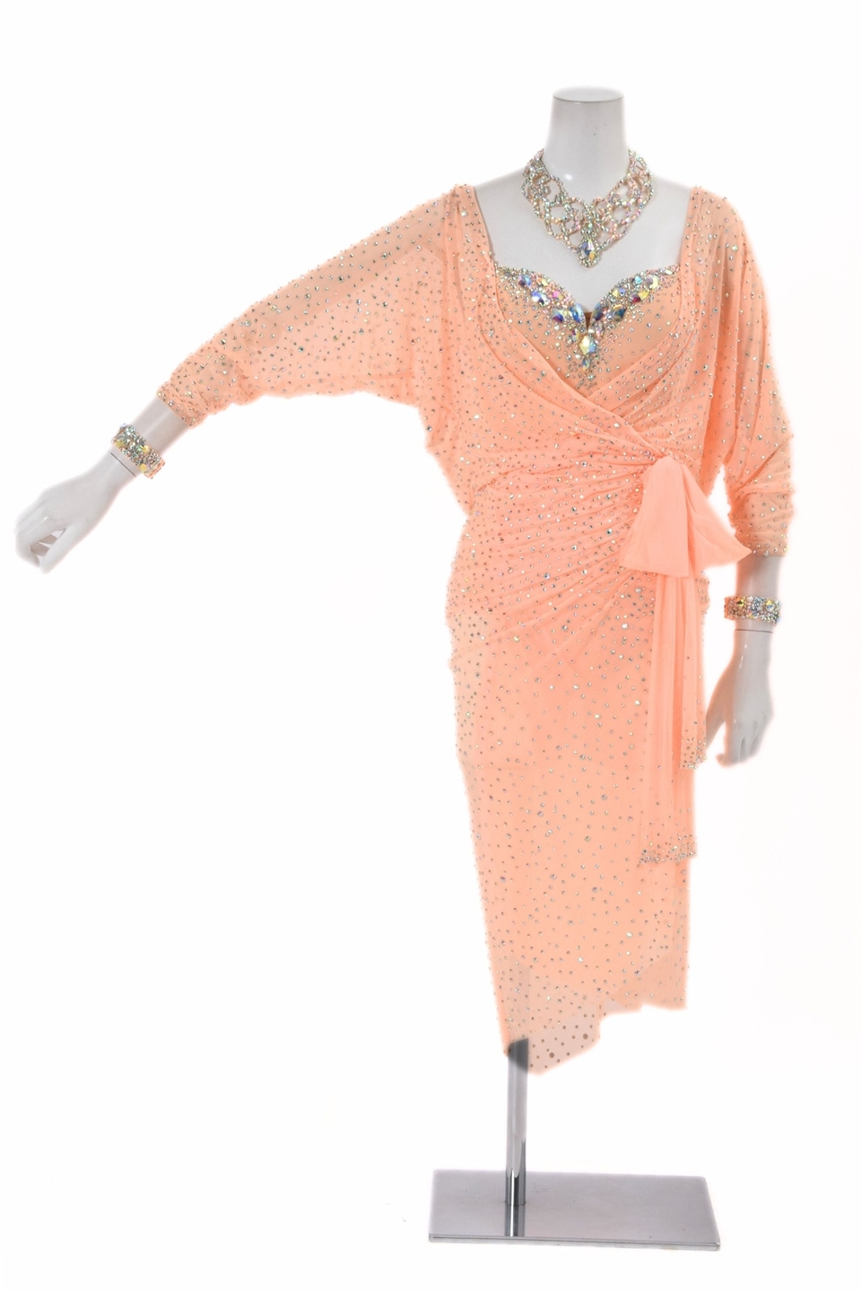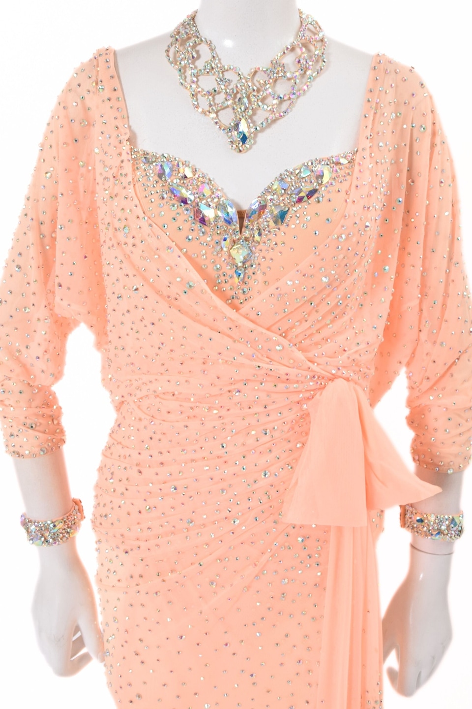 タカダンスオリジナルデザインの社交ダンス ドレス。ストレッチネットにふんだんに散りばめたラインストーンが美しいデザイン。