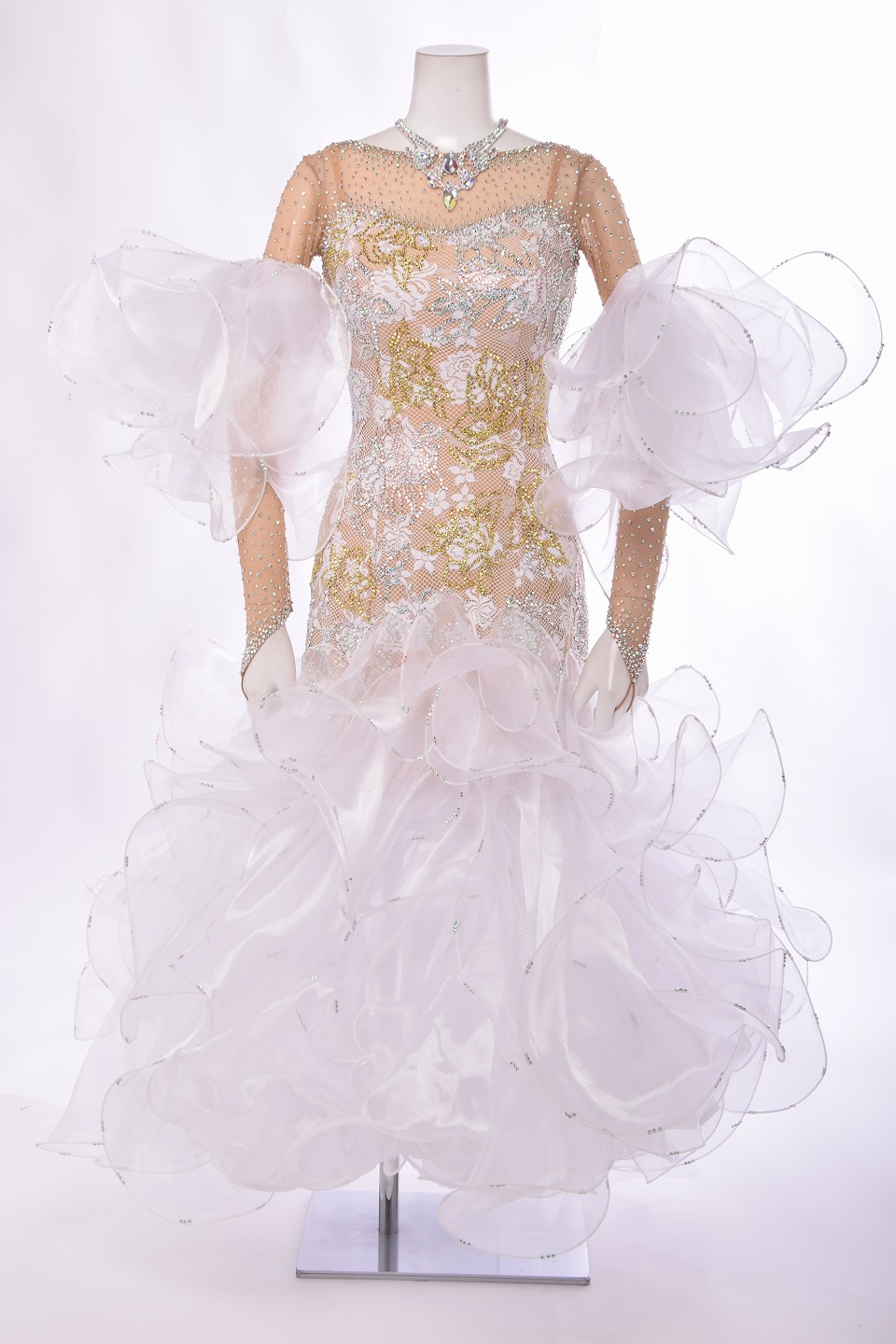 スタンダードドレス WS0769D ホワイトIII M 社交ダンス モダンドレス ボールルームドレス タカダンス